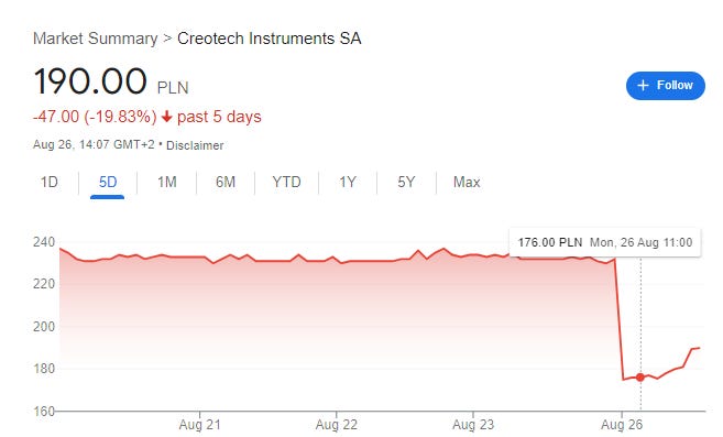 Creotech is a satellite manufacturer based in Poland which launched an EagleEye satellite on Transporter mission in August 2024. There have been some issues with the satellite which resulted in traders erasing some 20% of its market cap.