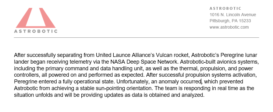 Space companies seem to be much more transparent with spacecraft anomalies. Astrobotic might possibly have been a trailblazer in space, “setting a new standard for space mission transparency” (NASA watch, link) in January 2024.